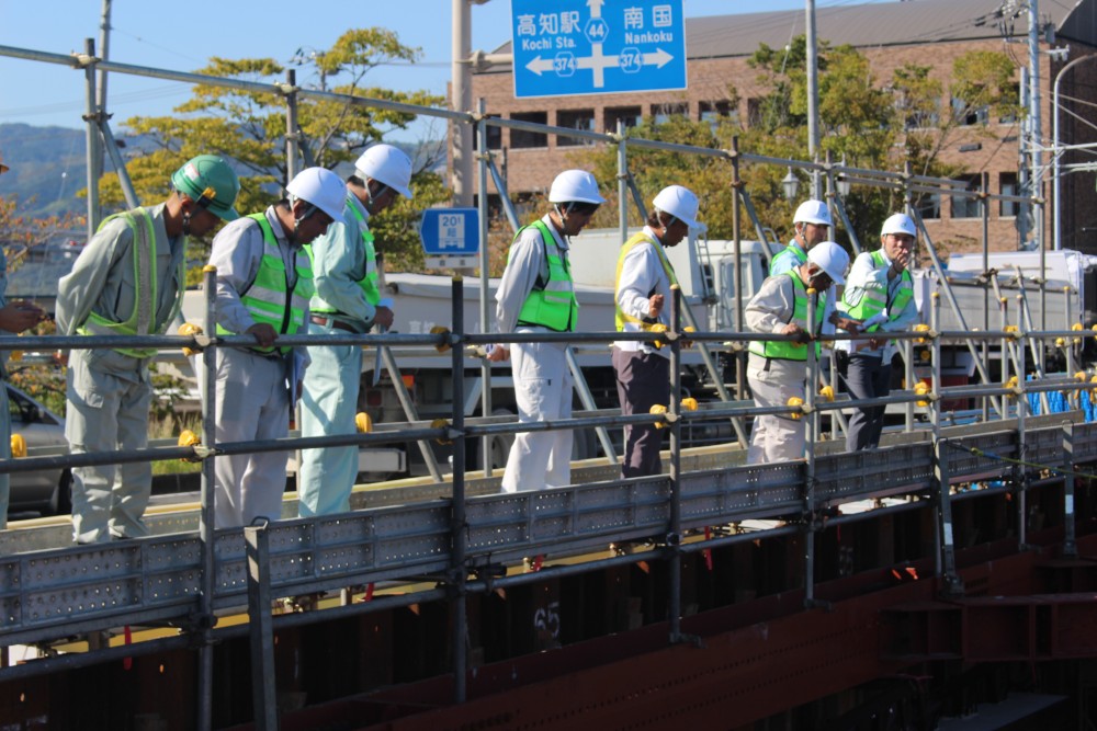 当日は中讃支部の方々が高知にお越しになり、情報交換会に先立って高知市内の当社の建設現場を視察されました。