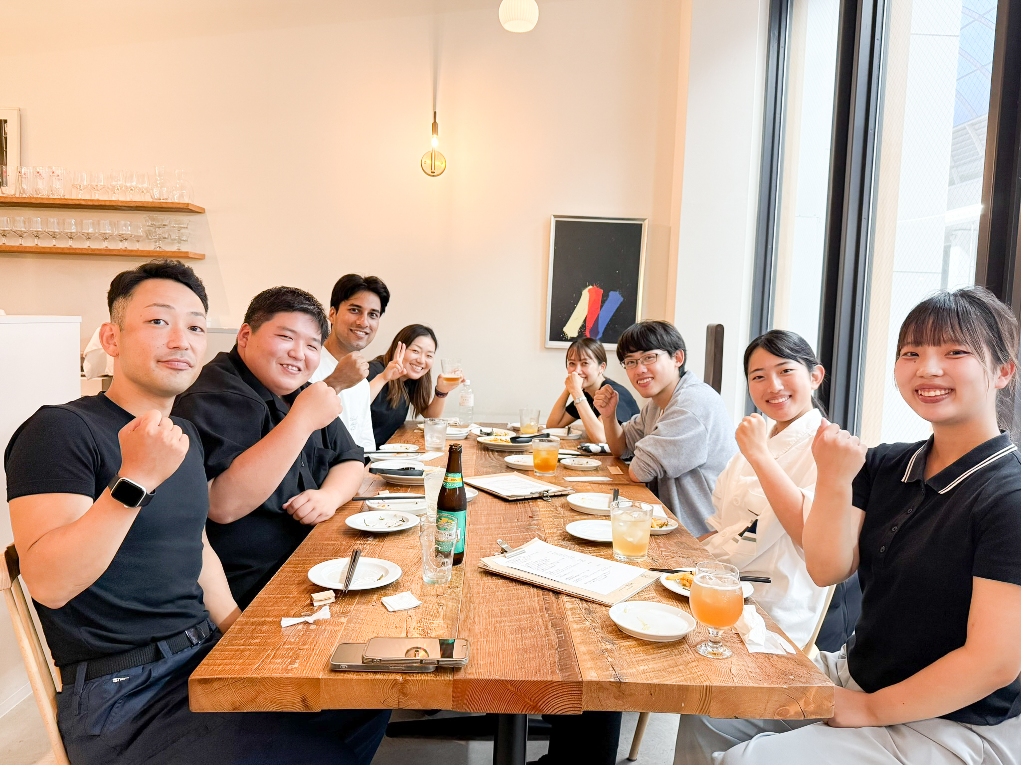 最後に3日間の振り返りを行い、その後は弊社の飲食事業部にて懇親会を開催。全員が参加してくれて、食事を楽しみながらざっくばらんに語り合う、温かいひとときとなりました。